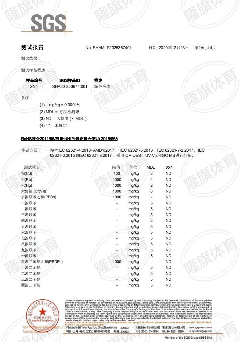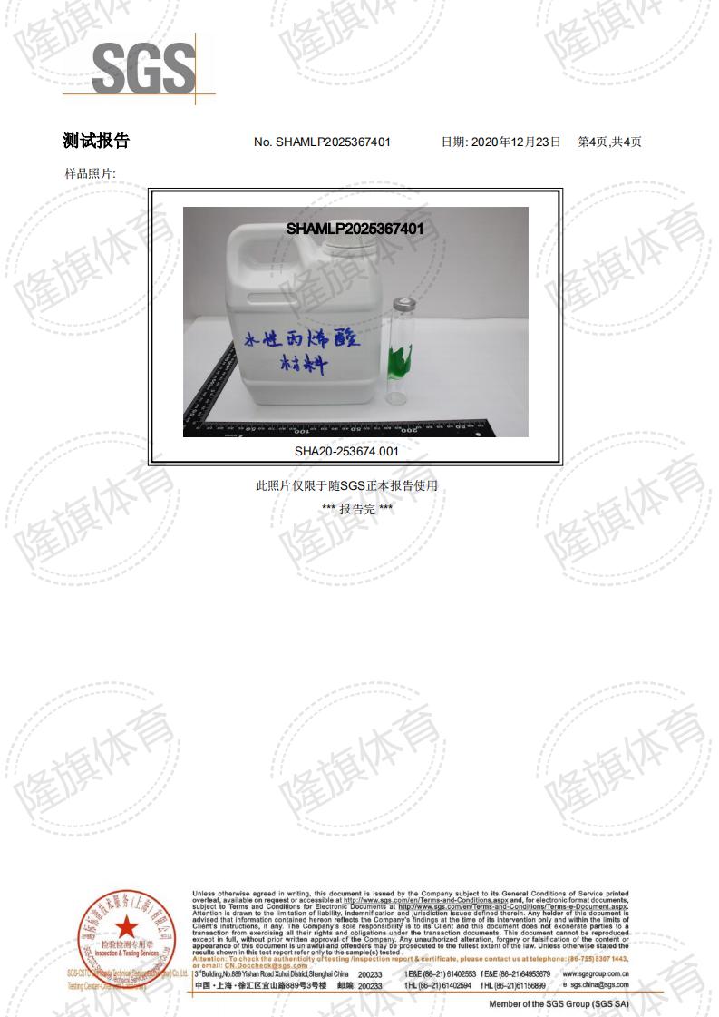 丙烯酸材料SGS检测报告